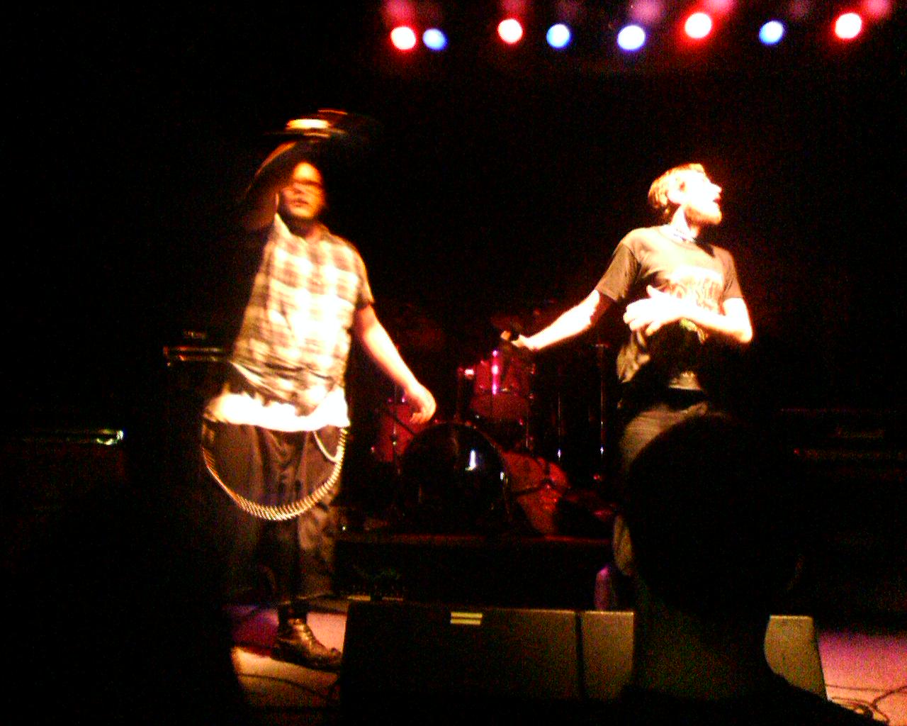 I caught Grand Buffet last night at Harpers Ferry in Allston. I loved it... it had been a while (at least 2 years) since I've seen these hilarious dudes. The opening acts DJ Alan Astor, Mahi Mahi and Motherboard didn't disappoint either. Alan Astor was wearing a Daft Punk tour shirt which was awesome and he brought out some sweet vocoder vocals over some nice electro dance beats. Mahi Mahi killed it with a terrificly synthy synth rock sound that made me smile and feel comfortable. Their drummer was tight and punchy which caused head bobbing and generally rocked. Motherboard was cool too slamming out a really decent set of heavy sludge rock which was a completely and totally different flavor than the rest of the bands, but it worked out. Their drummer came complete with a plastic barbarian chest so how can you lose!? Then Grand Buffet came on and proceeded to be hilarious as ever with their improv style comedy interludes sandwiched with their synth heavy rap songs. They seem to spend enough time with the comedy aspect of the show that you end up hearing less actual songs. I need to laugh so I thought it was great and I can always go home and listen to the tracks no problem. I'm done typing...Awesome~ ~Je®®y Miah...AIM= eekeekeeek |