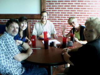![]() ![]() Had the work going away lunch at Malik's up off 1604 and Bandera. The only redeeming factor of the event was the company. Service was horrible. I didn't get my food until more than an hour after we arrived, got it to go, and found out it wasn't even the right thing when I got back here. *rolls eyes* But the company! The company was great. The first shot is Andrea, Melinda, Tricia, Wade, Ashley, [Kendra, Jennifer, Yvette, Karen, Cindy, Pam, Amy,] Heather, Alan, Gina, Byron, and Kathy. The kids' table housed Tim, Amy, Jaime, Tonya, and Kathy. *warm fuzzies* |