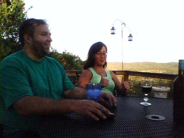 ![]() ![]() ![]() ![]() ![]() ![]() Spent a wonderful Saturday evening at Tim and Amy's place out in Pipe Creek. Got to meet a great couple, too -- Nathan and Nicole. Tim's a fellow lover of gadgets and the reason I have the Garmin (not so that I can find their place, since according to the Garmin's maps I'm just a dot in a big vast emptiness when I get out there -- possibly a metaphysical commentary). Check out the treepod setup in shot 3. I don't know if I could go to work if I got up each morning and saw that vista, but I imagine being able to pay the mortgage is incentive enough. And an obligatory shot of Jeepers, da stowaway cat. |
