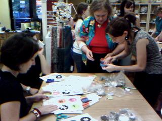 ![]() ![]() ![]() A few chicks from the Austin Craft Mafia (including Jennifer Perkins whose great kitschy jewelry I've been addicted to for a few years now -- coworkers don't click on her link at work) and DIY's show Stylicious came out to join in the fun at The Work*Shop in Austin. Leah did a Q&A session and signed books, we had a mini craft swap, and then we had at the crafts. Lots of folks opted for the Badge-a-Minit, which foiled quite a few attempts, but I ended up with a Craftster Army mirror to show for it. ;) I'm definitely going to have to talk Holly's mom and Stephanie into coming out here to this place before I go. The owners are SO sweet, plus the supplies were great. |