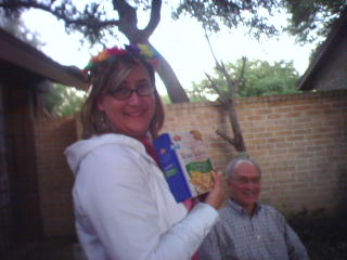 ![]() ![]() ![]() ![]() Dropped by for Ashley's going away. She's being whisked off to Google, along with Winston (and a shot of the bookthong I made her -- I'm addicted to the things). Finally, a shot of her showing off the Fiesta finery brought over by some neighbors who were way cool for being firmly in mlee's workplace demographic. |
