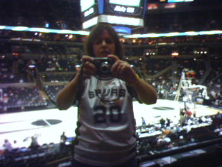 ![]() ![]() ![]() ![]() My team had a "Spurs kitty" going around for contributions to game ticket for my birthday. Laura got us these great seats with they money, and although they lost, we still had a lot of fun. She wrote Jon to arrange the Coyote visit, and you can tell from the horrific "do I have broccoli in my molars" smile that I was pleasantly surprised. ;) |