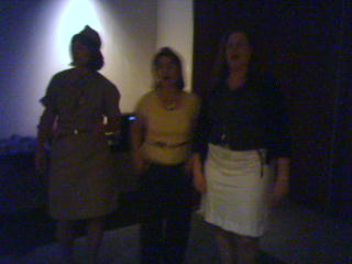 ![]() ![]() ![]() ![]() Laura's doing a WAC-style piece with Irma and Nicole. I got to make her skirt, which was my first foray into the world of the zipper foot. Far less intimidating than I had imagined. The second shot is Laura displaying how they're going to hold back the cheering throngs, and I included a few shots of the rehearsal. |