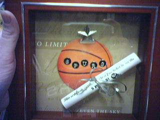 ![]() ![]() ![]() ![]() ![]() ![]() ![]() So... when I got to work today, I was overwhelmed with Spurs tchotchke. My friends are completely insane, and I love them dearly for it. This was the combined effort of like 12 people, but three of the chief perpetrators (plus Sammy's mommy) in the third picture are Yvette, Ashley, and Amy. You'll notice the whole team even dressed in silver and black so as to match (Ashley's on injured reserve). The free throw line is right outside my cubicle, facing in, and I've got a Spurs lamp, Spurs pillows and a Spurs license plate frame. Not singled out are the meowing cat puppet in a teeeeeensy tinsy jersey, and a genuine t-shirt launcher t-shirt along with a signed photo and sticker from the Coyote. Sometimes it's good to get older. ;) |
