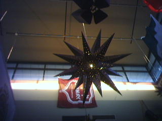 When I get home, I've gotta send y'all a shot of a temporary wall we rasterbated at work. Wall was c. 20 ft. wide and 10 ft. high. We covered it because the wall was put up to block off a popular exit during construction. A lot of folks kept accidentally turning into that (now dead end) hall to try to leave through it. Figured we'd give them something to grin about when they realized they'd gone the wrong way. We took a wide shot of the Starbucks kiosk downstairs, rasterbated it, and pasted it up. Took two of us (hi, Laura) most of one weekend to complete the piece, but it looked great when we were done. |