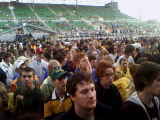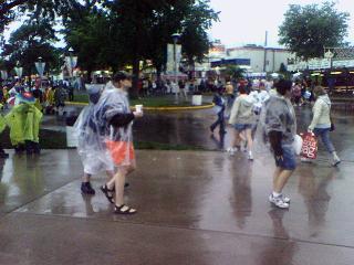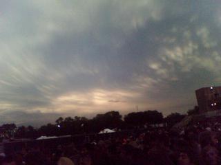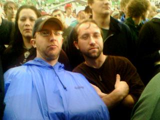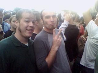 ![]() ![]() ![]() ![]() ![]() ![]() ![]() ![]() ![]() Thunderstorm cleared, tornados avoided us and the show will go on. Everyone in rain gear waiting for Sonic Youth and the Flaming Lips at the Minnesota State Fair Grandstand. Out with Bo and Matt, ran into Josh, Rob, Pierre, Jesse... Dave and Kyle giving rock hands 6 or so rows in front of us... should be a good show. |