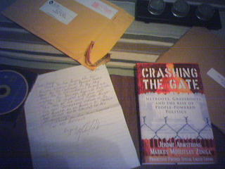 ![]() ![]() ![]() ![]() A few initial copies of the Flaming Lips' "The Soft Bulletin 5.1" DVD came with the wrong CD. The DVD is their brilliant 1999 release remixed in 5.1 surround. It is quite amazing. The CD along with it was supposed to be a "demastered" version of their 2006 5.1 release as they heard it at Tarbox Road Studios. What mistakenly was shipped was the original 1999 US version. Per a suggestion from George Salisbury I sent my copy and a short note down to the Lips in Oklahoma for a replacement. Today I got a handwritten note from Michael Ivins and the correct CD. I also got an advance copy of "Crashing the Gate: Netroots, Grassroots, and the Rise of People-Powered Politics" by Jerome Armstrong and Markos Moulitsas Zúniga. Now I need to find time to read. |