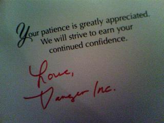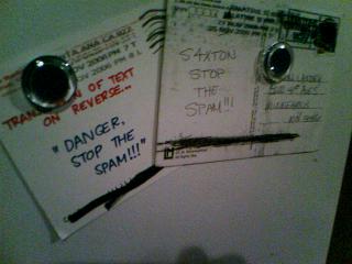 ![]() ![]() ![]() My efforts to turn Danger's lack of spam filtering into a widely talked-about issue amongst the hiptop community has spawned, amongst other things, numerous postcards to my house. A couple of them I still have on the fridge. It keeps getting better and better: this card is signed, "Love, Danger Inc." |