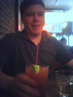 ![]() ![]() ![]() ![]() ![]() ![]() ![]() ![]() ![]() Out with Vanessa. She gave me a Bad Cat calendar with a cat driving a car. Meow. She wanted to give a shout out to Rick Murray, the Free Movie Ticket Empresario of the City Pages Alternative Weekly, 1997-1998. She also gives a shout out to Timmy D and Meredith in the C-Grove. I give a shout out to all the rockin' Texans with a toast of Lone Star Beer: Michael, Shelley, Shaun, Donna, Ben, Ben's Mom, Regan, Sami, Janna and former Texans Jenn and Elaine along with Totally Scrabble Hamil who is currently in Texas tonight. Vanessa had an Easter Islander and I had a Paralyzed Polynesian. Arr num num. |