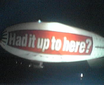 ![]() ![]() For the last few days there has been an a very bright UFO over Minneapolis. Sometimes it takes a trip over to Saint Paul. I first noticed it last night on my way home on I-94. It took quite a long time to figure out what it was: a blimp that says "Enough is Enough" on one side and "Had it up to here?" on the other. There's a good thread about it at MNspeak.com where nobody seems to be able to figure out what it is about. A report by WCCO, our local CBS affiliate, didn't add much more information about it but the reporter did get a ride in it. Good for them. The notable part of the story for me was that this is apparently going to go on for one month. Either way, nobody in the city seems to know what the hell this thing is other than that we are being eaten by a viral marketing campaign of some sort. My guess? A month from a few days ago when the blimp started flying puts us to election day. Peter McLaughlin, who is running for Minneapolis Mayor happens to use the exact same typeface and colors on all of his stuff. He isn't doing terribly well against incumbent R.T. Rybak and needs a new curveball. Seems mostly logical to me, but it doesn't sound like it would be a good campaign tactic unless he can explain what we are having "enough" of. It also doesn't explain why it went over Saint Paul for the Minnesota Wild season opener as he's not running for Saint Paul mayor. It would be horribly expensive as well. Peter McLaughlin would be named the "Blimp Mayor" for the rest of his life. I hope I am wrong. Although it is weak, it's my best guess so far. |