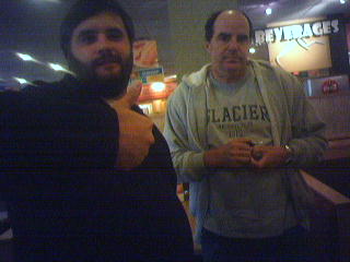 Late last week the radio in my hiptop died. Sad. Right after my warrantee expired too. So while I figure out what to do about replacing or repairing it, I've been using a Nokia 6610 and my friend Dave Lee's old Color Sidekick with a broken backlight. Last night, Bill and Kim let me borrow their old silver cam so I can at least post something! This is what I would have posted photos of if I had a hiptop with a camera at the time: Last Friday: Had dinner with my grandparents, extended family and Masako Memezawa, a friend of my grandparents from Japan who stopped in town on her way from São Paulo where she was at a conference. Although the language barrier was sometimes difficult, it was very good to see her again and talk about some of the music she listens to, what her family is up to and how her trip was. She repeated an invitation to me: "You are welcome to Japan." I must take her up on this when I am able to. Last Saturday: Future cousin-in-law Walter's bachelor party. Long story short I had too much to drink, my cousin Nick got kicked out of Drink in Uptown and I barely remember my bus ride home. Photos would have been good. Last Sunday: Dixie's Calhoun to play Scrabble with Barry, Karyn and Bryan. I won the first two games, and Barry and I tied the third. Tuesday Morning: A new IHOP opened right near my work at 6am. Co-worker Nick and I were one of the first customers. Quite exciting, except it was as if the entire staff was on their first day at the job. Overly friendly, though. Fantastic chocolate chip pancakes. Tuesday Evening: Meeting at my mother's house with my stepfather Randy and my sister Amy. Still trying to figure out how to get my mother's assets and estate handled. It's been extremely rough. I think we've just turned a corner and we're beginning to head in the right direction now. Wednesday Evening: Bill lends me his silver camera and I take the photo of him and Kim, and in the late evening Amy Berg comes over and she smoked me in Cribbage 2-4. I'm glad I didn't quit when it was 0-4. Today, I'm heading up to Brainerd, MN for a geocaching event that the Minnesota Geocaching Association is hosting. My last day as a Board member is Saturday. We'll see how the old silver cam works out. |