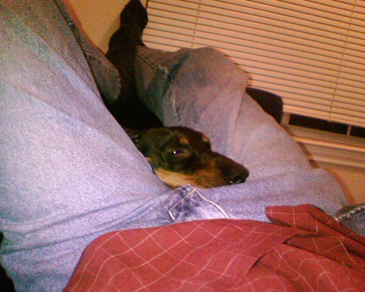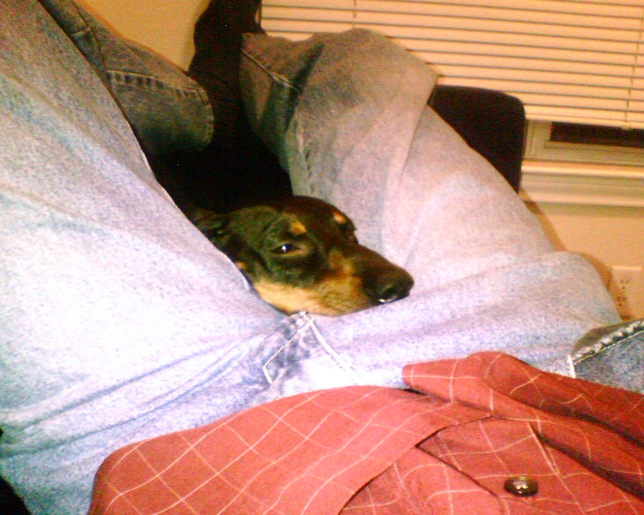![]() ![]() ![]() Yes, that's my crotch, yes that's my puppy, and yes he's adorable. His name is Dunkin, he's a dachshund. He's not actually a puppy, he's two years old but he still has a puppy face. He's currently asleep and having puppy dreams. He keeps making little muffled woofs with his eyes closed. I think he's after something. lonerisks.com apt404.com AIM - sorenlikesyou |