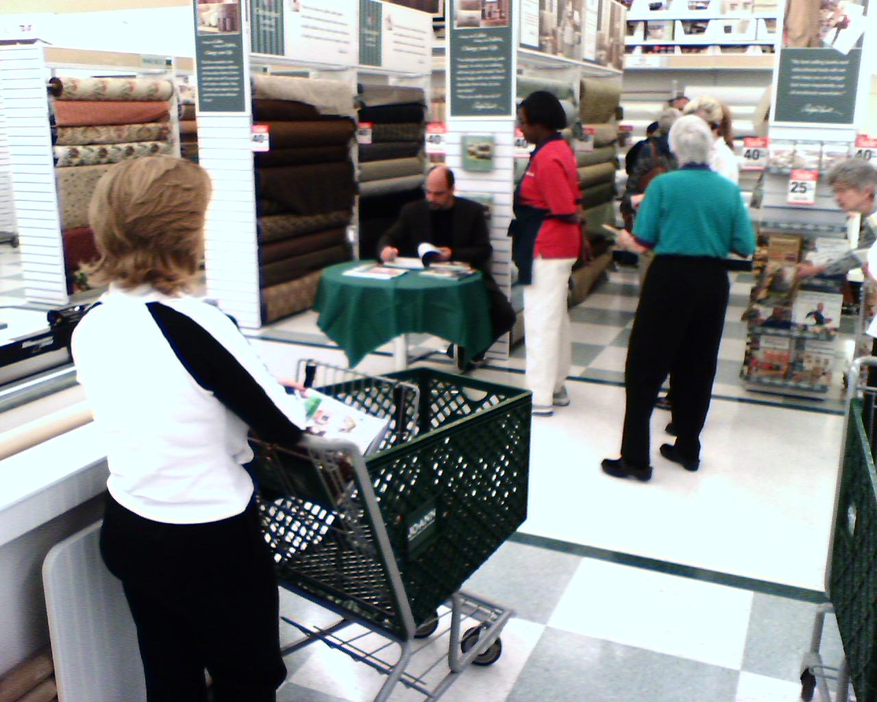 ![]() ![]() My wife made me go with her to Jo-Ann Fabric & Crafts today at lunch. It's not exactly my kind of place but I did get to see Christopher Lowell. I'm not too familiar with him but I think he has a DIY show on the Discovery channel or something. He was there for a promotion. Apparently, he has a line of fabric or drapes, or something that sells at Jo-Ann. It was pretty amusing to see all the 40+ year old ladies all excited to meet him. |