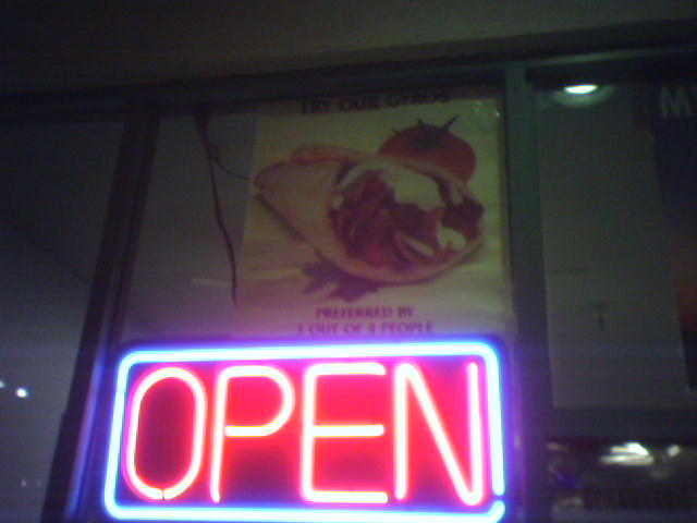 ![]() ![]() Phoenix has an astounding mix of culture, albeit we are dominated with more then a normal mix of Mexico (which is normal here; this is a border state). We also have a large Chicago-ian influence. Near my house is this small hole in the wall greek resturant. It's sandwiched between a Blockbuster video and a Samuri Sam's, a japanese fast food chain. The food is really good, if you like gyros. There is a sign facing out that says "preferred by 3 out of 4 people". But the sign was folded, and on the inside it says "over the McDonald's quarter pounder". I found this amusing, and thought I'd share. --sub-ether --subether |