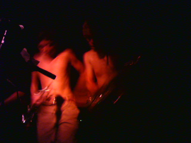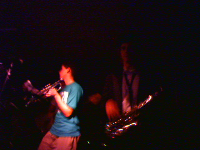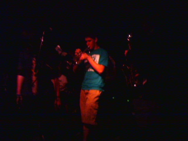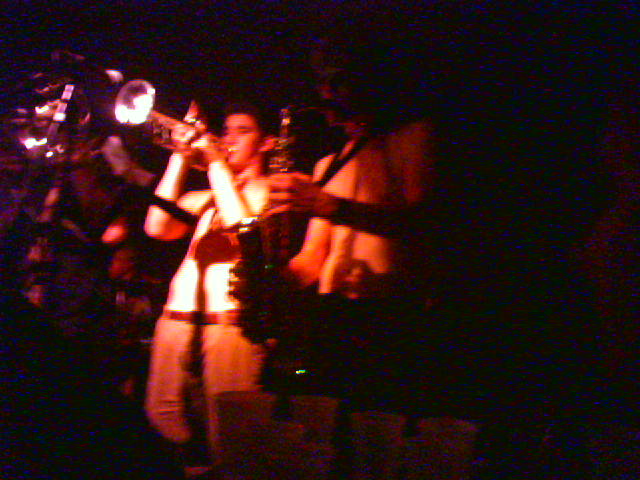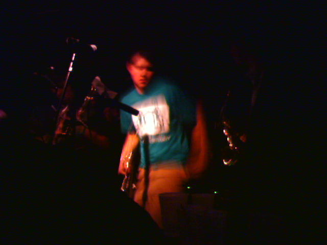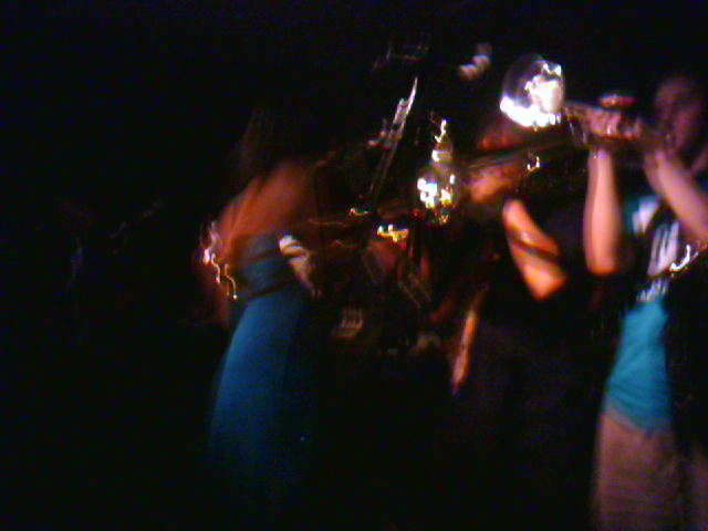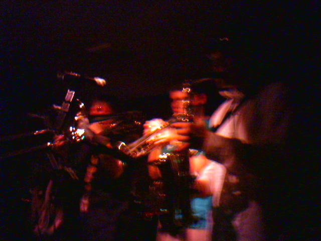 ![]() ![]() ![]() ![]() ![]() ![]() ![]() ![]() First off, Janna took all the blurry pictures. ;) And 2nd, Mason was in this tux thing...and slowly but surely he stripped. first the coat....then the vest...then the bowtie...then the shirt. lol. after his shirt came off, Dan, the trumpet dude took his shirt off. so it was a big sweaty body fest. woot. and dans elbow was drippin with blood from smashing his arm into Mace's Sax. YUCK -sAmI- |