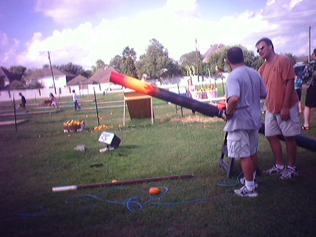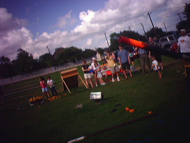 ![]() ![]() ![]() ![]() ![]() ![]() ![]() ![]() ![]() Contest at our church...using left over pumpkins from the patch...there was a large potato gun type thing....like 12 feet long...called the mutha chunka. It was launched with compressed air and went extremely far and won. And there was a big trebuchet. ... Didn't see it get launched but I heard it sucked. :) -sAmI- |