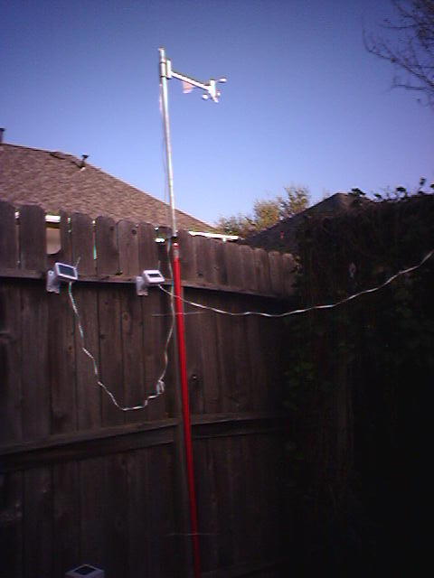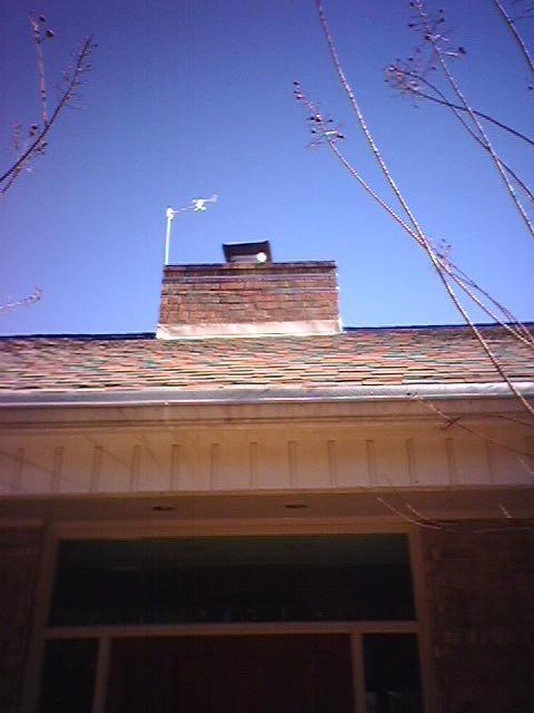 Got it up above fence level now, using about the most ghetto installation method I could think of. Actually, it worked out pretty good because I know that's not a good place to put it now. It's still below the roofline and the wind swirls around, throwing the reading off by about 90 degrees. Looks like I'm going to have to go for a backside chimney mount. Sleebus |