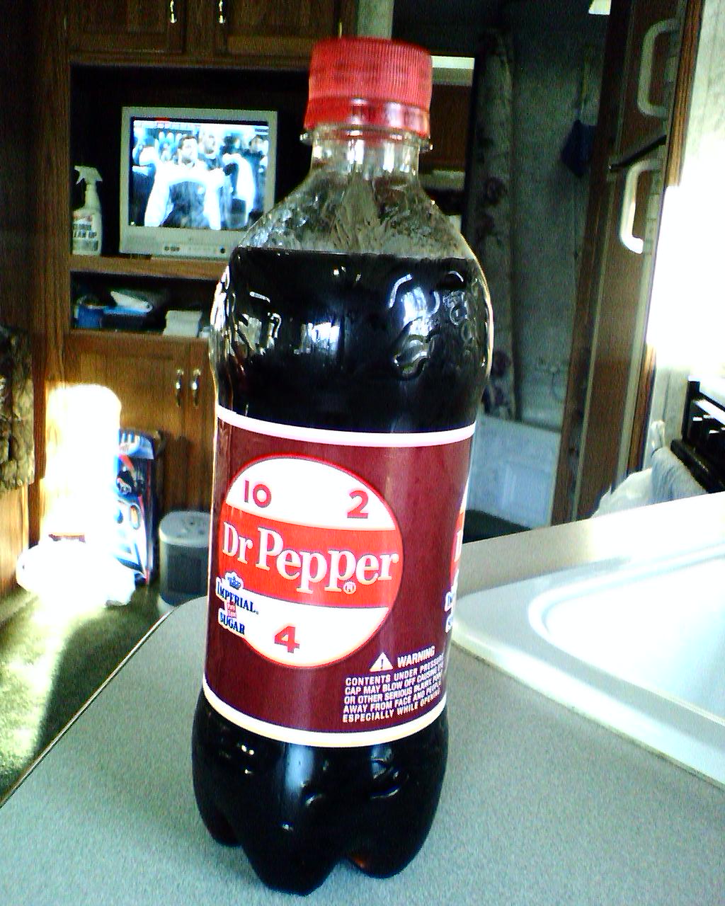 Found this in the Sealy Wal*Mart. What makes it special is the "Imperial Sugar" logo on it. All other Dr. Pepper is made with corn syrup, *but* if you go to Plano, TX where it's made, you can get the real stuff. Not sure how these got here, because they're only supposed to be availible direct from the Plano bottling facility. Oddly enough, the first time I had one, I got it from the Big Dip Grocery, right up the street in San Felipe. Don't worry Dad, I picked you up a bottle. :) Sleebus |