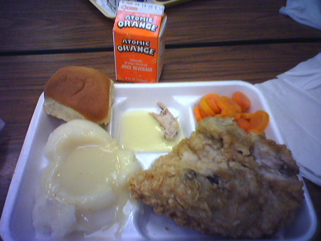 ![]() ![]() ![]() Thursdays are my day in DJ's (second grade) classroom.. I get to help out in reading groups, spelling and any other little projects his teacher may have for me to do. Its so much fun interacting with the kids, especially at this age... they are still innocent for the most part! DJ asked me stay and have lunch with him and on today's menu was oven baked chicken with mashed potatos and gravy with carrot coins... I don't know about you but the chicken I had in grade school was not this big, LOL! Man Churches (or KFC) aint got nothing on the cafeteria chicken, and you KNOW Churches has got some BIG chicken, lol! Mmm, the soft, sweet rolls and the orange drink were so good, DJ hardly ever buys lunch... He doesn't know what he's missing! Viv-PHX, AZ |