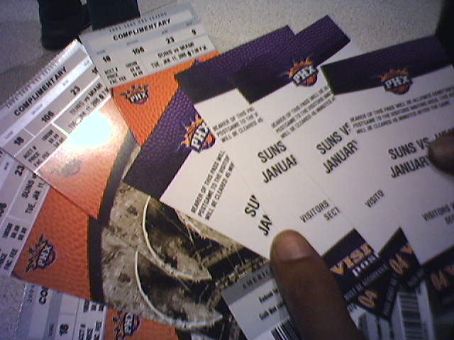 ![]() ![]() ![]() ![]() ![]() ![]() ![]() ![]() ![]() I have no idea if these are going to be in random order or not.. but here are some pics from after the Suns v Heat game. I was in the company of Katt Williams, aka, Money Mike and his crew so I had to snap and go as they were moving fast! Shawn Marion, Steve Nash twice...(this was awesome as he very rarely takes pics and stuff like that), Amare "Stat" Stoudemire, Dwayne Wade twice (looking mighty dapper might I add), and the big fella Shaq twice, our tix and locker room passes that Shaq provided. The game, however was a blowout, 122-107... the Suns are the number one team in the NBA... GO SUNS!! Viv-PHX, AZ |