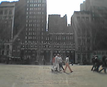 ![]() ![]() ![]() Having lunch in Bryant Park, right behind the New York City Public Library, I see these 5 guys in khakis and short sleeeve shirts walking in a nice little pack for some ad. While it wasn't freezing cold, it was slightly chilly with a tiny bit of wind to help lower the temperature. I hope at least one of those GAP ad wannabes get frostbite. |