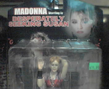 ![]() ![]() ![]() Apparently not happy with her accomplishments, Madonna in her quest for total world domination has entered the fray with an action figure line. Actually it looks like the company who owned the rights to the Desperately Seeking Susan movie felt the need to cash on in the action figure frenzy and had some figures made up of the character Madonna played in the movie. Either way the look like crap and pretty much suck. If they wanted to sell any of these what they should have done was made a Modonna action figure of her when she published her SEX book or her Eroctica video. |