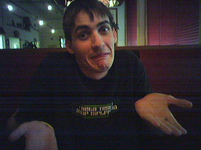 ![]() ![]() ![]() Just a few pictures from the meet. As expected, a low turnout since most people are in Vegas. We stayed til about 4.30. C+S and I went out to Batt's car and slept about 3 or so. Nothing out of the ordinary. Luis gave me a free juice "cause you brought cookies". Score. :) ------------------------ Bird (Graci) -tinyurl.com/ytchdw I put the Jew in Jewel. |