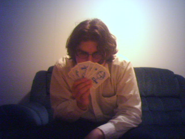 Ha! It was green, he guessed peacock. Green, pipe, kitchen. And I thought he had kitchen the entire time, and kept shouting, "Carlson has kitchen!" every time he took a turn. I kinda need a life. I'm playing Clue. Lolz. ------------------------ Bird (Graci) -tinyurl.com/yfsa4m -tinyurl.com/yagdmz Yes, I have a blog. And I'm writing about you, right now. |