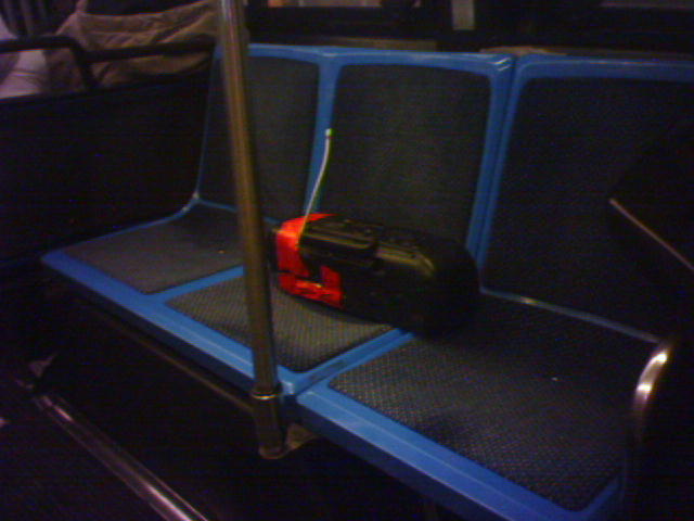 Omg. Random object on bus with tape all over it. I assumed it belonged to the girl sitting next to it, but when she got up and left, it stayed. We are convinced it belongs to a terrorist who made a crappy bomb that didn't go off when intended. I was wondering aloud to carlson and sara, "I wonder how long that's been sitting there, and people just keep sitting next to it but not moving it cause they don't want to touch it." The girl who just sat down next to it was like, "Well, let's move it then." and stuck it behind her on the window sill. It did not explode. ------------------------ Bird (Graci) -tinyurl.com/yfsa4m -tinyurl.com/yagdmz Yes, I have a blog. And I'm writing about you, right now. |