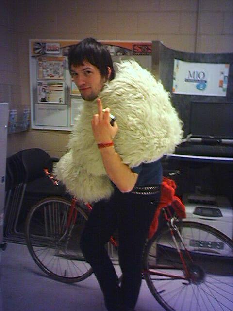 Dustin came in today carrying a large piece of fake fur. He informed me that he stopped at yard sale on his way to work and bought it for 10 bucks. "I just had to get it, isn't it awesome?" yea. I was on my break and informed him that I was having a shitty day, and he wrapped it around his shoulders and started making growling noises, then called himself the Deli Yeti. I couldn't decide if he was trying to cheer me up or just didn't want to listen to me bitch anymore. Anyway, when he left work, he wrapped up the coffee I brought him* and his keys and such in the fur, and wrapped it around his body so he could ride home. I decided it was a god picture, but he decided it would be better with some bird-flippage. *he told us the other day that he was completely out and was reusing the day before's grounds, and was too broke to buy more. I told him I had previously bought a cheap 4 pound bucket, so I brought him what was left. I'm nice like that. Then he forgot it at work and bought more anyway. But then took mine home today. I verbally abused him for it. Was fun. ------------------------ Bird (Graci) -tinyurl.com/ytchdw "It's easy to regret your awkward conversations but hard to regret the ones you didn't have." |
