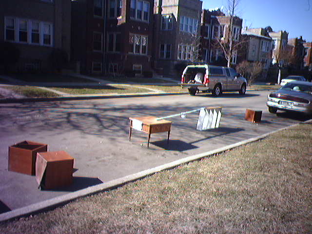 ![]() ![]() ![]() Just saw them dropping this off as I came home from work not 10 minutes ago. I had pulled out my sk to take a picture of the street; they had set out more furniture to save a spot again. As I was about to take the pic, the truck came up the street with the big blue garbage thingy again. What odd timing, eh? Anyway, I am sick of this damn construction. I'm now on a friendly, normal basis with the workers. The site of each other has become a daily routine, and we just nod and say "sup". This has been going on for well over a month now. It may be more like 2, now that I think about it. These people are 85, why are they doing such exstensive remodeling? ------------------------ Bird (Graci) -tinyurl.com/ytchdw "That either smells like bad meat or good cheese." |