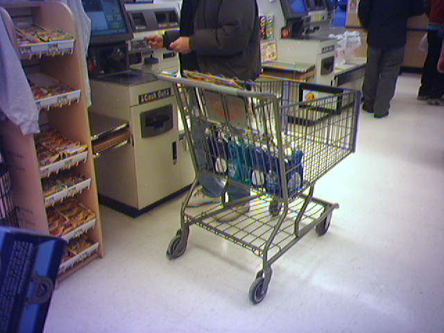 That's a shopping cart half-full of dishsoap, in case you can't tell. I know I stock up on like lightbulbs when they're on sale for $1, but I don't buy 45 of them. Especially cause dishsoap lasts like a long time. I don't have a dishwasher so all the dishes are done with that kind of soap in my house, and one bottle of Ajax has lasted me like 3 months. So what he's got in that cart is literally like a 5 year supply for a normal household. Then I thought, "What if he's soaping a fountain?" But even then, do you really need that much soap? The only thing I can think is he owns a restaurant and they ran out and won't be getting a shipment of their normal stuff for a while. Or he drinks it because it gives him "the power". ------------------------ Bird (Graci) -tinyurl.com/yagdmz "History repeats itself, first as tragedy, then as farce, then finally as the salad course." |