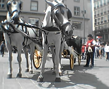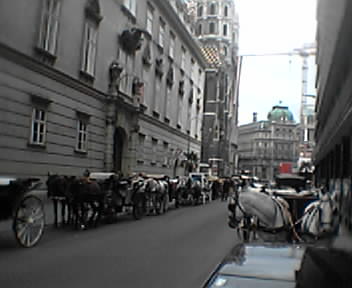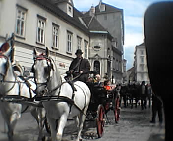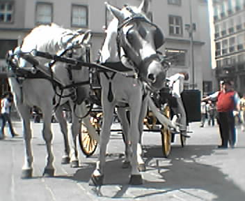 ![]() ![]() ![]() ![]() Vienna is in a nutshell Venice minus canale with singing gondoliere plus "Virginia" smoking Fiaker. Fiaker is the name of the horse powered carriage commonly used at Maria Theresias times. Nowadays the Fiaker horses show (besides their huge and fat buts) the tourists around the old parts of the city, gives them a feeling what their dollar is really worth (already 15 minutes are awfull expensive) and provides a huge amount of horse shit to the streets. "Virginias" are not virgins - virgins are only in tiny homeopathic doses found around our places, but long and ultrathin cigarillos, long lasting and extreme stinkers. They have to be smoked outdoors in any case - even if there would be non smoking coffees or restaurants here. Anyhow - if one would would ask the horses - they would not like the virginias either |