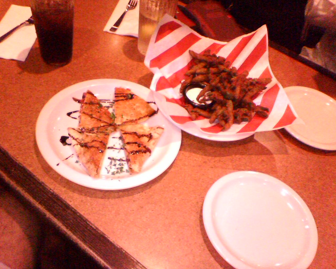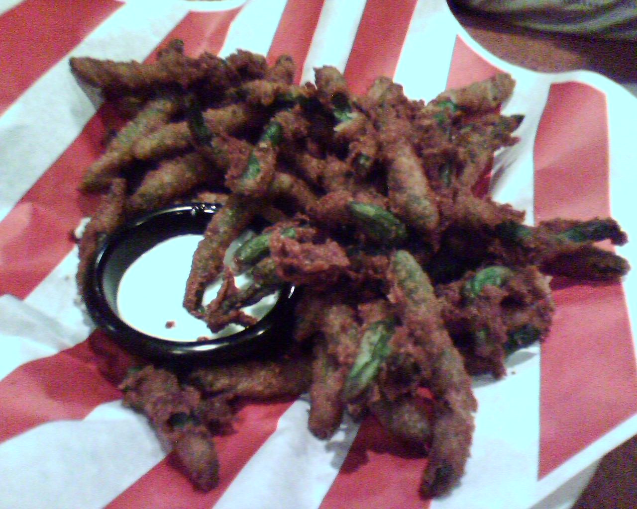 ![]() ![]() ![]() ![]() ![]() Went to Friday's (that's considered splurging =) ) for dinner, and to try out their fried green beans appetizer. As with all deep fried items that aren't chicken or turkey, after a couple of bites the oil kinda gets to ya... good sauce tho'... Even got the Tilapia free because they messed up the order! |