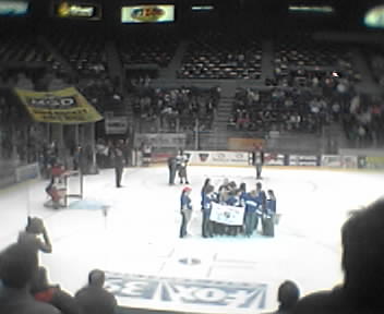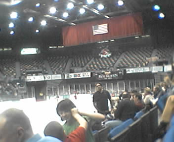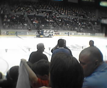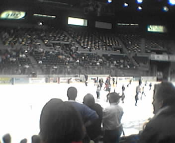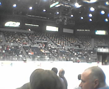 ![]() ![]() ![]() Still 1-0 them, how lame, Chuck a puck, everyone gets a puck to throw on the ice, you land it in the center face off circle you get $500. Some guy just did! A few fights and lots of sin bin minutes but the hogs just can't find the back of the net, they got 20 mins to score. More to come. --Chris Falco |