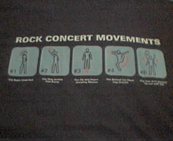 ![]() ![]() ![]() ![]() ![]() ![]() ![]() ![]() ![]() ![]() Just got my sweet blue man group complex tour shirt and dvd today, check it out: I know a bunch of people from the community here went so you all should check out the dvd at blueman.com it's the entire concert and is as fun as the concert was! Rock concert movement #1: the basic head bob Rock concert movement #2: the 1 armed fist pump Rock concert movement #3 the upand down jumping down motion. Rock concert movement #4 the behind the head leg stretch Rock concert movement #6 the two arm upward thrust with yell Rock concert movement #91 enjoying the tshirt you bought at the complex rock tour ----------------------------------------- If I sing a song will you sing along or will I just keep singing right here by myself? --Chris Falco |