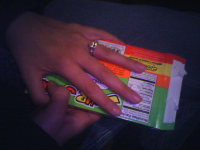 ![]() ![]() dear beloved, we are gathered here today to celebrate the harmonious occassion of unity between one engaged left hand and her beloved box of sour jacks. but we cannot proceed due to the jealous and broken heart of the weeping theatre soda cup! so, until this matter is resolved, please feel free to partake of the plentiful cheese platter located at the rear of the building. -- Steve~o @(^o^)@ |