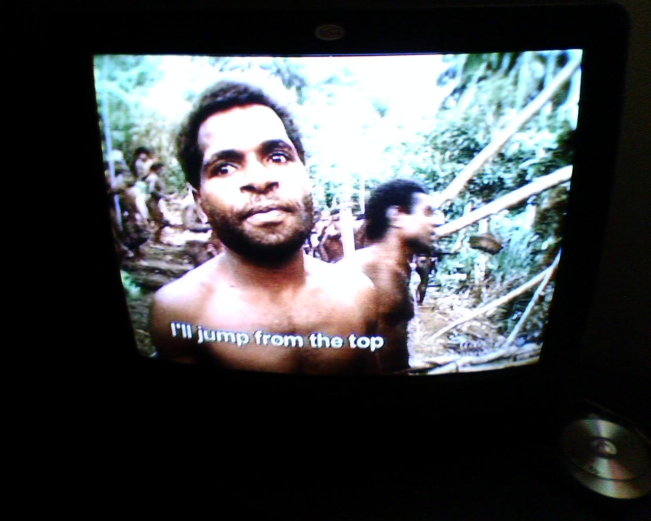 ![]() ![]() Was watching Tribal Life on the travel channel tonight. They did a show on land diving. Basically guys jumping off an 8 story handbuilt tower with nothing but vines tied to their feet to arrest their fall a few feet above the dirt. Very impressive to see. There were 8 year olds jumping off from lower heights even. Unfortunately the shot of the guy flying through the air was too washed out to be worth posting. |