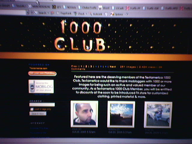 I received an email/comment from my textamerica blog saying I had been promoted to the TextAmerica 1000 Club. Uhh TA, you're a bit late, the count shows 1827 pics posted. Better get that 2000 invite ready. :) but I loaded up the 1000 Club page to check it out and found a familiar face right there on the first page! Hi PhD. :) |