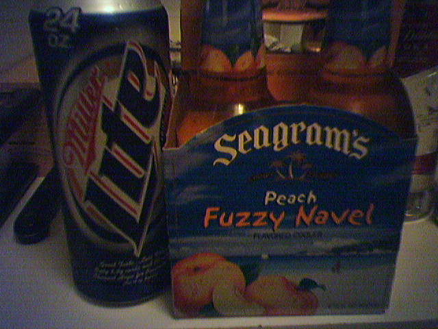 ![]() ![]() Swung by to see my friends at the liquor store and was devastated to learn that they were all out of Sparks! Everywhere around the store there were stickers and ads for Sparks, but not a single orange can in site. They said that there were two guys that have been coming in buying 5-10 cans a day. They cleaned him out of the normal Sparks and were even starting in on the Sparks Lite! I had to settle on Red Bull and vodka for the weekend. Britni opted for the Peach Fuzzy Navels and a big Miller Lite (bleah.. ) |