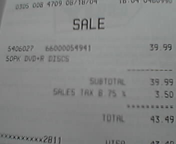![]() ![]() ![]() ![]() ![]() Pics of my exciting trip to Best Buy yesterday to buy dvdrs to rescue some data off of my corrupted 120g drive. Scored 50 dvdrs forr $40, not bad for "need it now" prices. -div ed.hunsinger.org + divmobile |