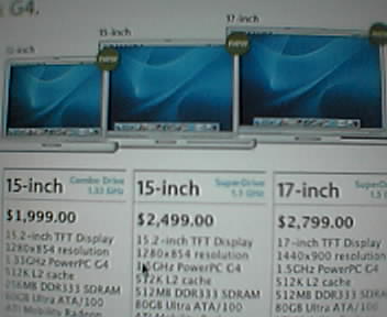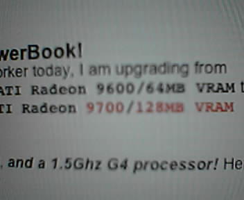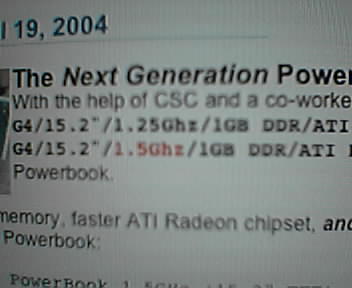 ![]() ![]() ![]() The Next Generation PowerBook! With the help of CSC and a co-worker yesterday, I am upgrading from G4/15.2"/1.25Ghz/1GB DDR/ATI Radeon 9600/64MB VRAM to a G4/15.2"/1.5Ghz/1GB DDR/ATI Radeon 9700/128MB VRAM Powerbook. Double the video memory, faster ATI Radeon chipset, and a 1.5Ghz G4 processor! Here's the specs on my new Powerbook: Product Name: PowerBook 1.5GHz (15.2" TFT) Options: 065-5069 1.5GHz PowerPC G4 with 128MB Graphics Memory 065-4860 1GB DDR333 SDRAM - 2x512 SO-DIMMs 065-5068 80GB Ultra ATA drive @ 5400 rpm 065-4825 SuperDrive (DVD-R/CD-RW) 065-4820 AirPort Extreme Card 065-4819 Backlit Keyboard/Mac OS - U.S. English Hopefully I know today or tomorrow when I'm approved to order my new PowerBook. Between CSC and my co-workers, I love working here. :D |