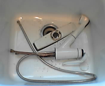 ![]() ![]() ![]() ![]() The Moen faucet in the kitchen sink broke and became a gusher last night. I had to quickly crawl underneath to turn off the supply lines. We're replacing it with a Moen PureTouch or a Price-Fister Pfilter faucet so we can get cold filtered water directly from the faucet (bye-bye Pur water pitcher :). |
