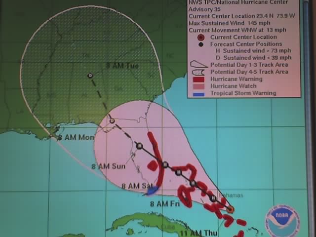 ![]() ![]() ![]() ![]() With Hurricane Frances approaching the Florida coast, Flagler county residents have begun evacuating. My mom called yesterday to tell me she had pulled her corvette and solara into the garage, loaded up the RV with pets and neighbors, and that she is leading an exodus of seniors to Mississippi. It looks like us in Virginia may be feeling the effects of it by Sunday. Vicky and I are going to Atlantic City with family for the weekend, so I may blog it from up there. |