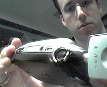 ![]() ![]() ![]() ![]() ![]() Based on G7's mod on the hiptop forum, I first lightly sanded the hiptop back panel (after removing it first, of course). I then applied two coats of the black base, then several coats of Krylon Mystique Blue/Purple, then several coats of the clear laquer to seal and protect it. After the laquer was dry, I buffed and polished the laquer to a smooth shine. I apologize for the photo quality and angles. These pics were taken of the sidekick using it's own camera in the mirror. I'll try to take a better set of pics using my Nikon Coolpix 995 later. You can also see G7's higher-quality pics on his Geocities page. I thought this was a phenomenon last night, but confirmed it this morning under various conditions. The metallic bits in the Krylon Mystique when sprayed on the back panel appear to be working as a partial antenna. I've noticed a 2-5 ASU improvement between using an unmodded panel (my old panel, which I kept) and the newly painted panel (which I had as a spare until now). I used both for comparison, held in the same area in the same positions, and the modded panel received high signal strengths. Hmmm... |
