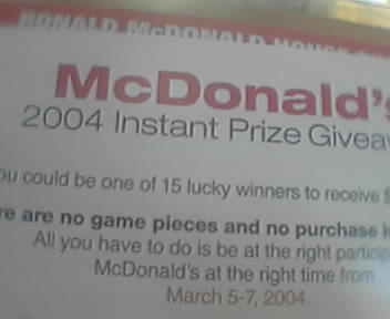 | McDonald's giveaway! Sat 03.06.04 1:08pm PST #8412 |