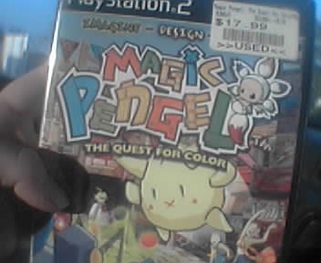 ![]() ![]() ![]() ![]() ![]() ![]() I picked this game, "Magical Pengel", up from Gamestop earlier for $18... And boy, was it worth it. The game's basically a Pokemon clone, but the twist is that you *draw your own characters*, and the game brings it to life. Basically POVray for kids. I wanted to introduce the world to my doodles: from left to right, we've got Chickie, the giant chicken; Dinkie, the four-armed squat fighter; Skorpio, my scorpion of doom; Rataroo, the giant rat (with authentic ratballs!); Sloog, the sneaky weasely fighter; and Deeva, magician dragon extraordinaire. By the by, drawing with the left analog stick? Hard as hell. No idea how kids are supposed to do this... It's just as hard as "Hey you, Pikachu!", if you ask me. --kalephunk |