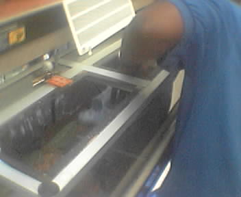 ![]() ![]() ![]() When I was exposing the photo silkscreen emulsion earlier, I took a few pictures, hoping to share info aboot this new process I learned.... Instead, I was pleasantly surprised by the reaction of my skcam to the 1000 watt UV bulb. Looks like a computer screen! Guess the refresh rate of the bulb doesn't mesh well with that of the cam ccd. --kalephunk |
