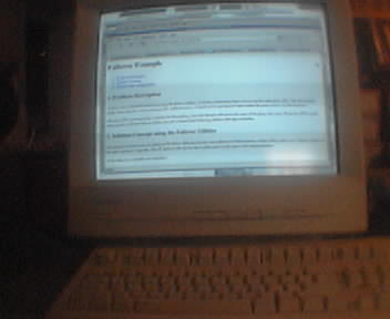 ![]() ![]() ![]() ![]() Just realized I never posted jpgs of my new job. My boxen -- a mini-itx main desktop and a celeron 450 test server (I've got 6 little p200s to test with behind me); my monitor (kdesktop with superkaramba and openbox browsing a page on failover), our case badges for the servers we deploy, and my sooper cool WiSIP phone. VoIP++! --kalephunk |