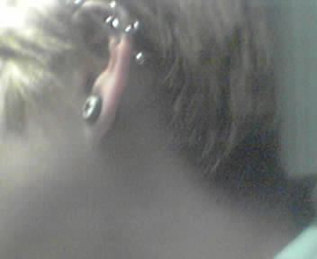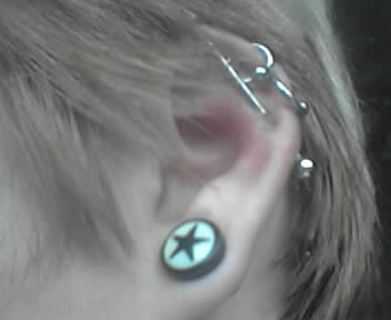 ![]() ![]() I got a new industrial the other day -- a straight 1 3/8" bar to replace my curved 1 1/2" piece. All was well and good with minor pain as my ear adjusted.... At least, until the pain started ramping up to now almost unbearable levels. And I can't get the bar out by myself and Nicki's away for the weekend... ARRRRHFJKVJCKDS --kalephunk |